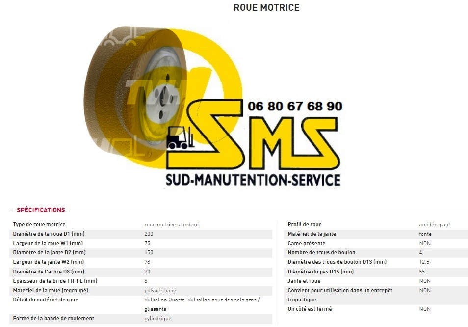 ROUE MOTRICE MIC G10 G12 WP10 200 75 30 mm GERBEUR ELECTRIQUE PIECES DETACHEES